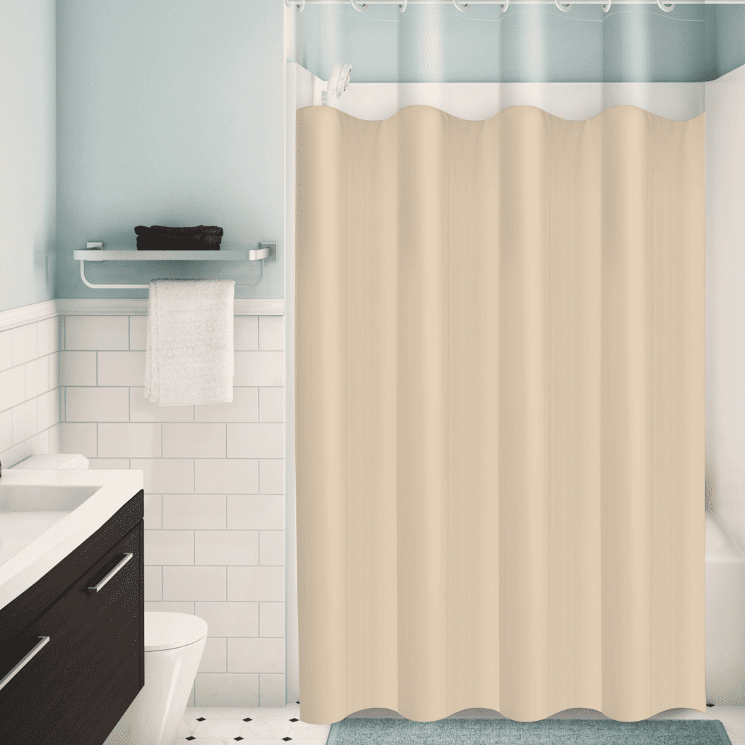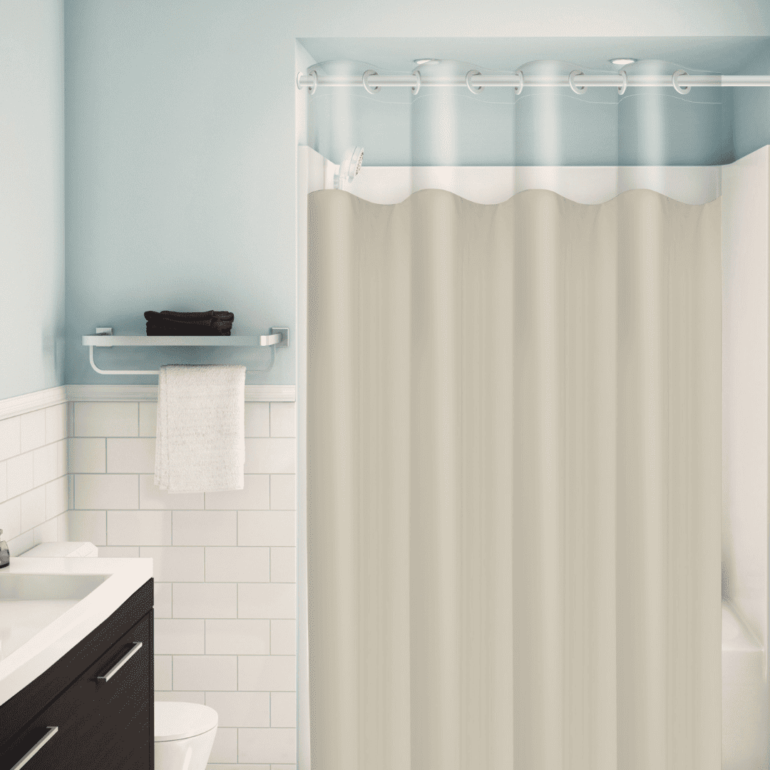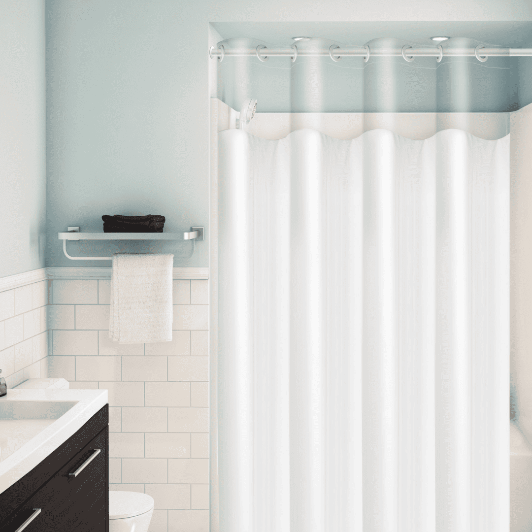 ✅ Cortina para box de banheiro com tecido pvc e visor de cristal